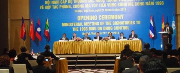 การประชุมรัฐมนตรีประเทศสมาชิกเขตอนุภูมิภาคแม่น้ำโขงเกี่ยวกับบันทึกช่วยจำเพื่อความเข้าใจเกี่ยวกับความร่วมมือในการป้องกันและต่อต้านการค้ายาเสพติดในอนุภูมิภาคแม่น้ำโขงปี 1993 ได้จัดขึ้นวันที่ 21 พฤษภาคม 2558 ณ กรุงฮานอย โดยมีตัวแทนของกัมพูชา จีน ลาว ไทย พม่าและเวียดนามพร้อมตัวแทนของสำนักงานป้องกันและต่อต้านการค้ายาเสพติดของสหประชาชาติเข้าร่วม